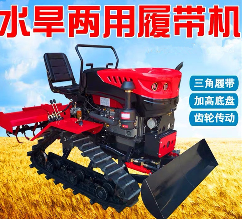 履带旋耕机设计比轮式有的适应性,底盘低,稳定性好,履带附着系数大,可以抵倾斜和下坡的坡地。履带拖拉机属于全地形作业机械,具有原地转弯转向的机动性,爬坡和越野性能强。